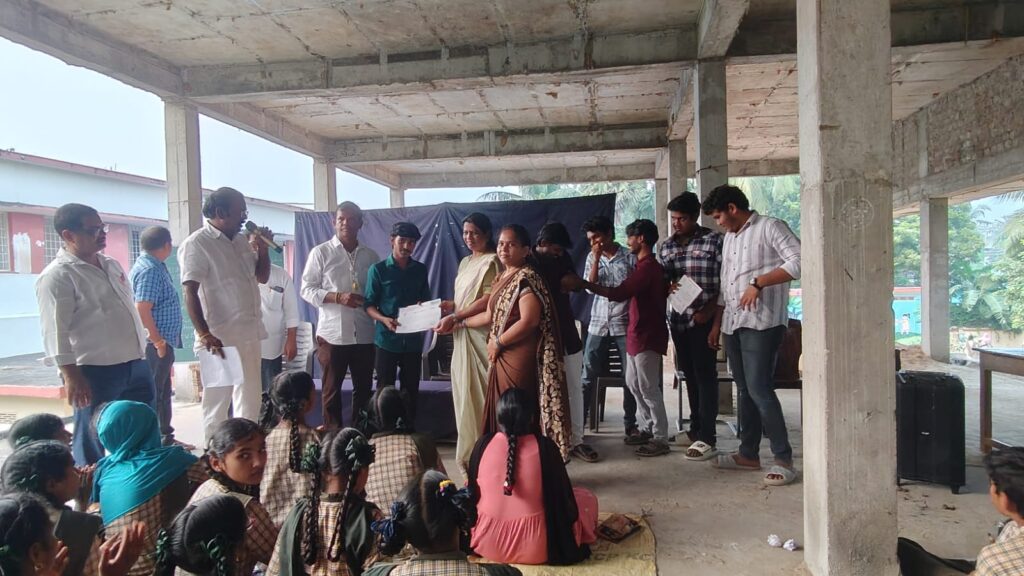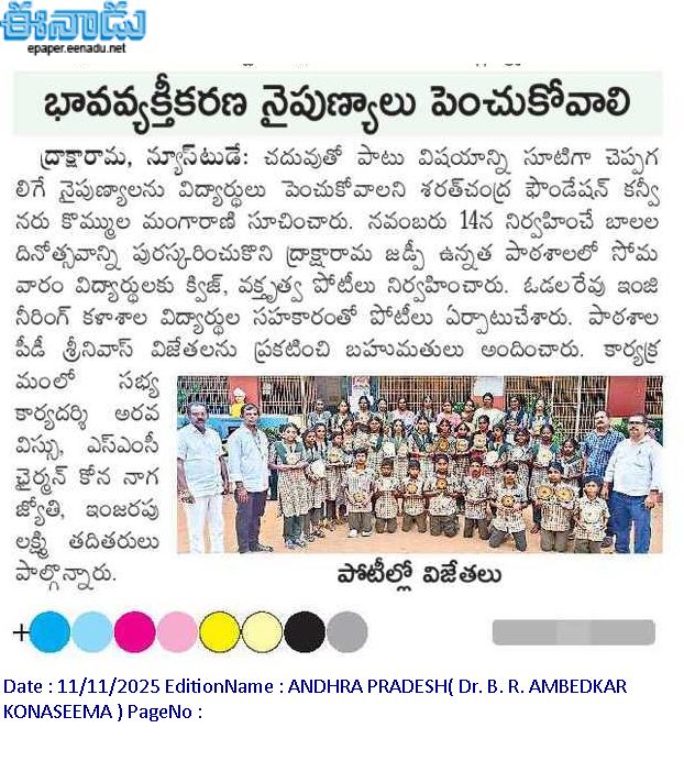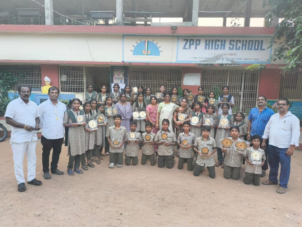 On the occasion of Children’s Day Celebrations conducted Quiz and Elocution competitions at Zilla Praja Parishad High School, Draksharama, DR.B.R. Ambedkar Konaseema Dt Andhra Pradesh. Distributed prizes to the winners. Students from BVC Engineering College, Batlapalem supported as Volunteers.
